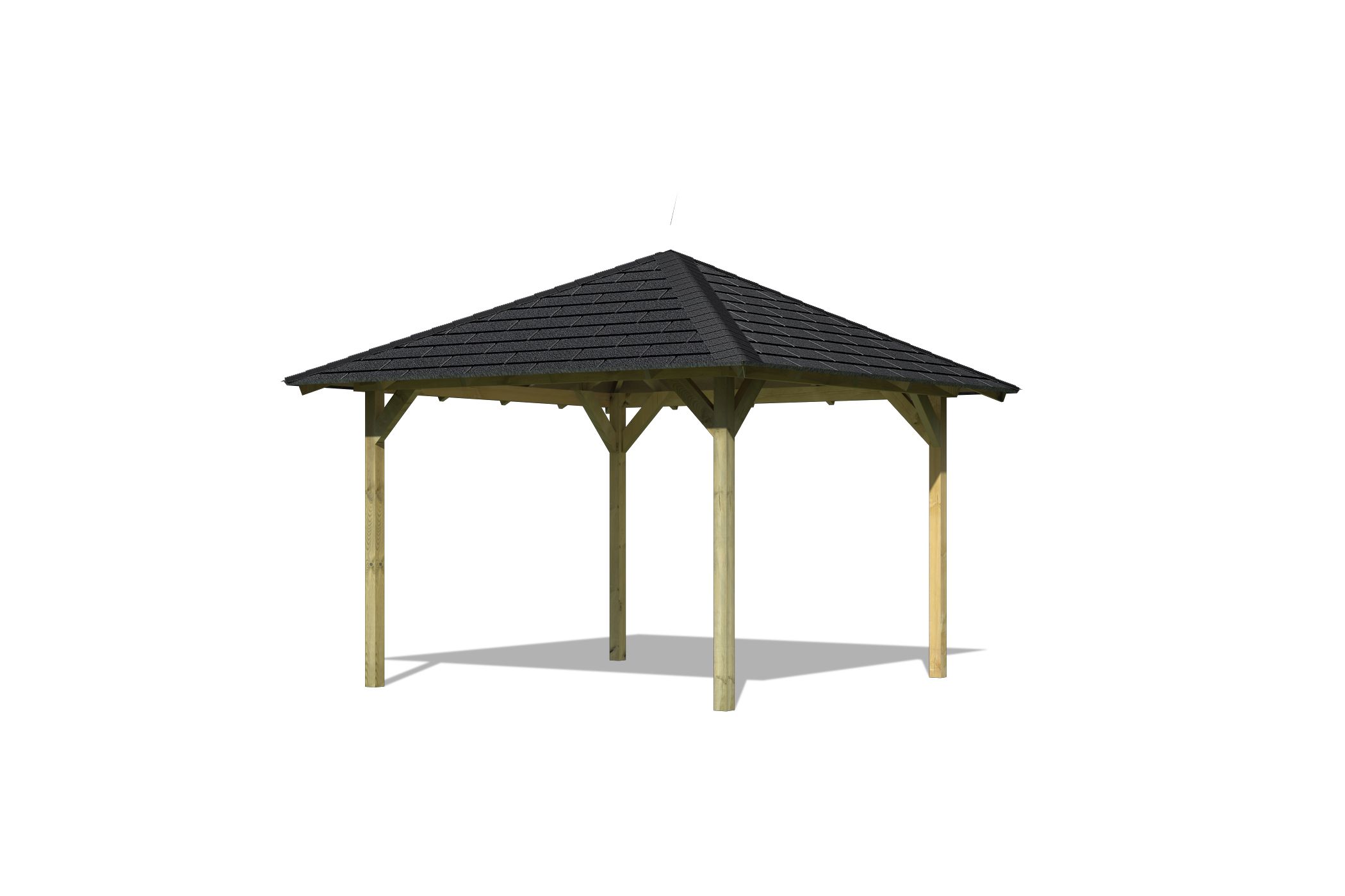 Durch sein spitz zulaufendes Dach, welches von vier 9 x 9 cm starken kesseldruckimprägnierten Massivholzpfostenand Querverbindern getragen wird, sind Sie optimal vor der Witterung geschützt. So ist auch ein Frühstück im eigenen Garten bei einem leichten Sommerregen kein Problem mehr. Schützen Sie das Dach Ihres Pavillon mit unseren optional erhältlichen Dachschindeln. Mit einem Außenmaß von (BxT) 289 x 289 cm bietet er ausreichend Platz für die ganze Familie. Mit dem Pavillon steht einem Grillabend oder einem Glas Wein im Garten nichts mehr im Wege. Nutzen Sie jede freie Minute in Ihrem eigenen Bereich der Entspannung und Ruhe mit dem Pavillon Cordoba.