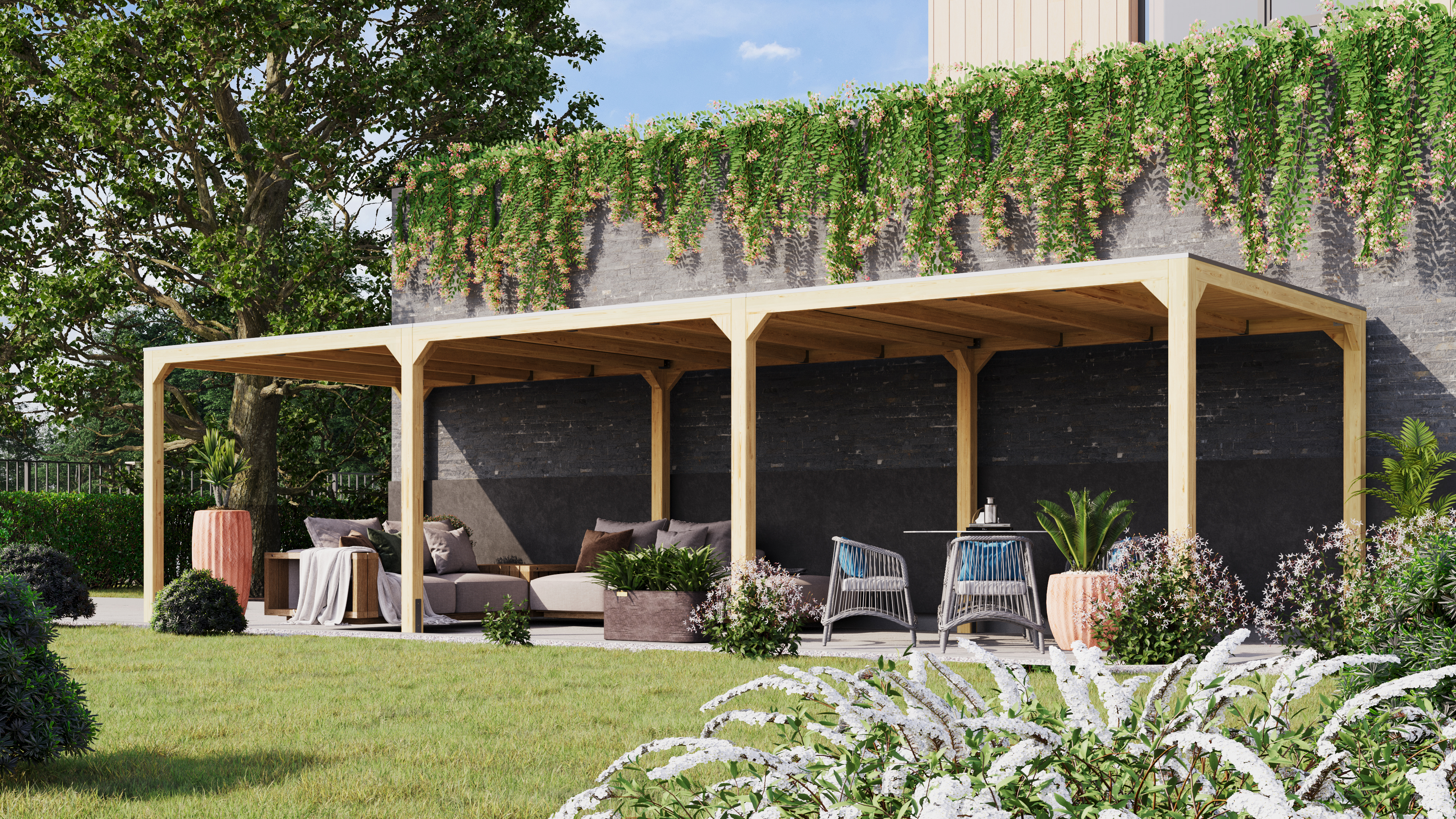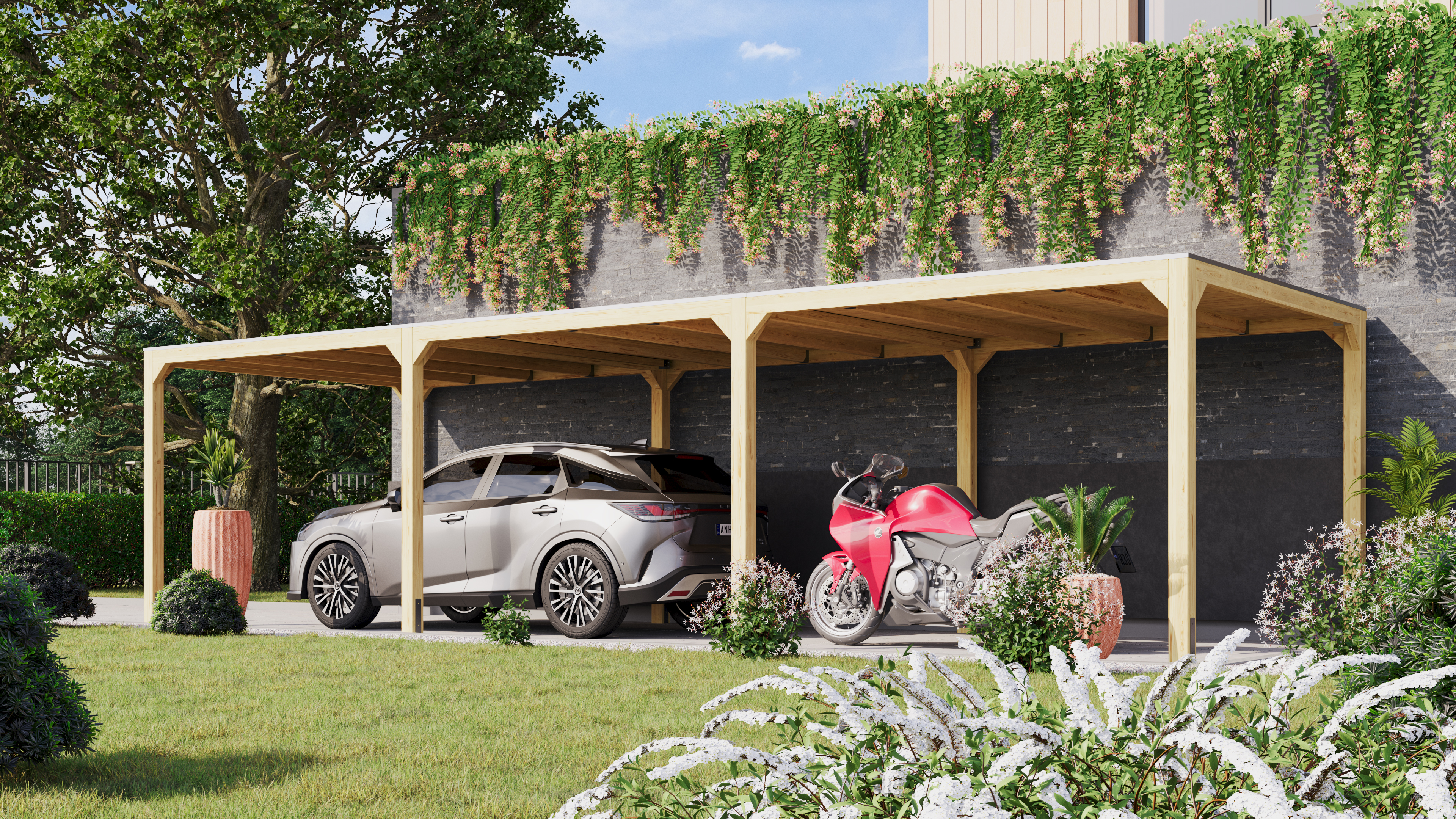 To ensure that the building is protected against wind and weather and remains undamaged in the long term, appropriate wood protection is essential. With our tips for optimal carport care, you're doing everything right. You can also use the care instructions for a wooden garage.