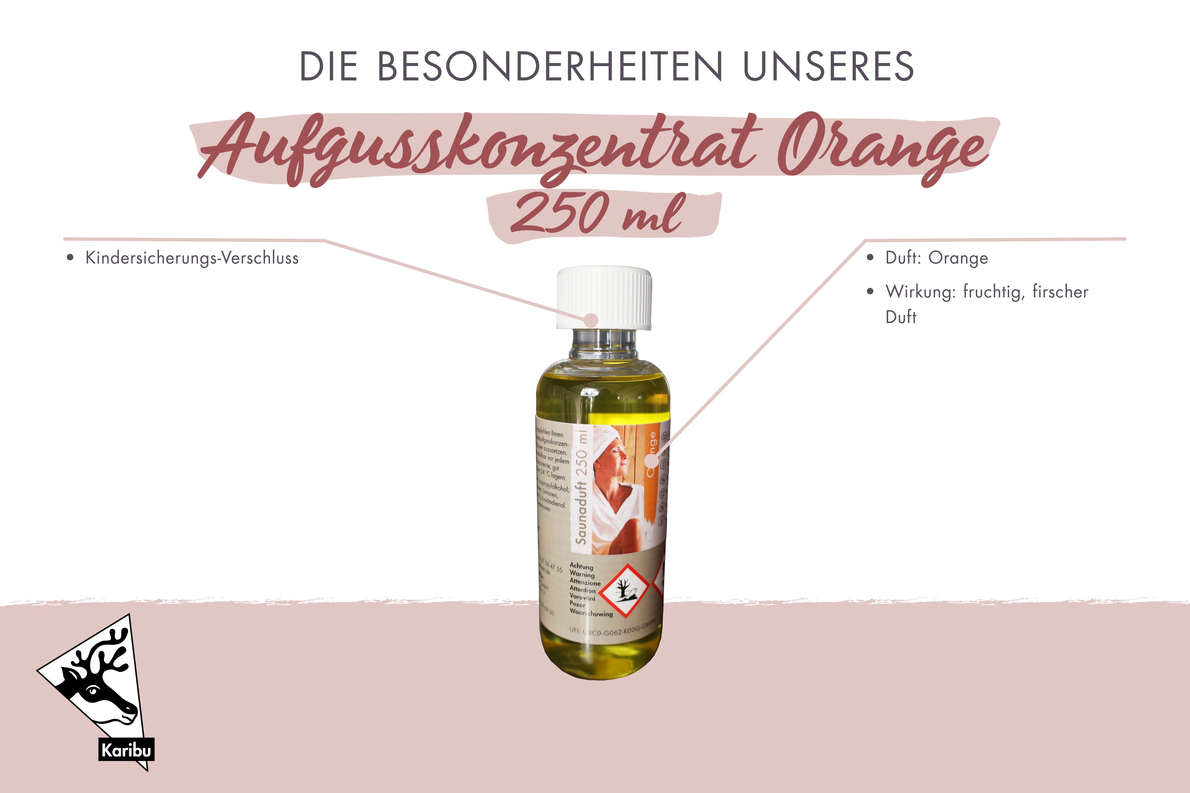 Verwöhnen Sie sich bei einem entspannten Saunagang in Ihrer eigenen Wellness-Oase mit dem wohltuenden Aufgusskonzentrat. Das Aufgusskonzentrat ist in verschiedenen Düften erhältlich. Verwöhnen Sie Ihre Sinne und schicken Sie sie auf eine Reise der Entspannung. Eine Flasche beinhaltet 250ml, 500 ml oder 1000 ml und wird durch einen Kindersicherungs-Verschluss geschützt. Unterstützen Sie die Stärkung Ihres Immunsystems, befreien Sie Ihre Atemwege, lösen Sie Muskelverspannungen und kommen Sie in Ihrer Sauna zur Ruhe. Der belebende Eukalyptus hat eine aktivierende, konzentrationsfördernde und kühlende Wirkung. So hilft dieses Öl gegen Erkältungen, Trägheit und Lustlosigkeit. Der exotische Duft Kokos-Vanille belebend, aktivierend und nimmt Sie mit auf eine Reise in eine ferne Welt. Ein fruchtig, frischer Duft wird mit dem Aufgusskonzentrat Lemongras im Saunainneren verbreitet. Dieser vertreibt Müdigkeit und wirkt vitalisierend. Bringen Sie den typisch finnischen Duft in Ihre Sauna mit der Fichtennadel. Sie wirkt mobilisierend, regt den Blutkreislauf an und wirkt sich positiv bei Asthma, Schnupfen und Bronchitis auf den Körper aus. Nach einem ermüdend langen Tag einmal tief durchatmen lässt Sie der Duft Latschenkiefer. Er wirkt Schleimlösend, fördert die Durchblutung und ist wohltuend bei Gelenk- und Muskelschmerzen. Nutzen Sie den Saunagang noch effektiver und tun Sie gleichzeitig etwas für Körper, Geist und Seele mit dem Aufgusskonzentrat.
