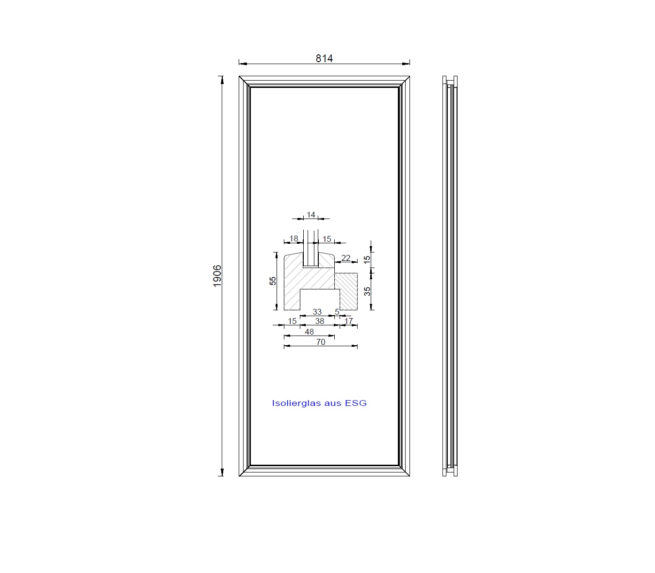 - Scheibe: Klarglas / Isolierglas aus ESG / 4-6-4 mm