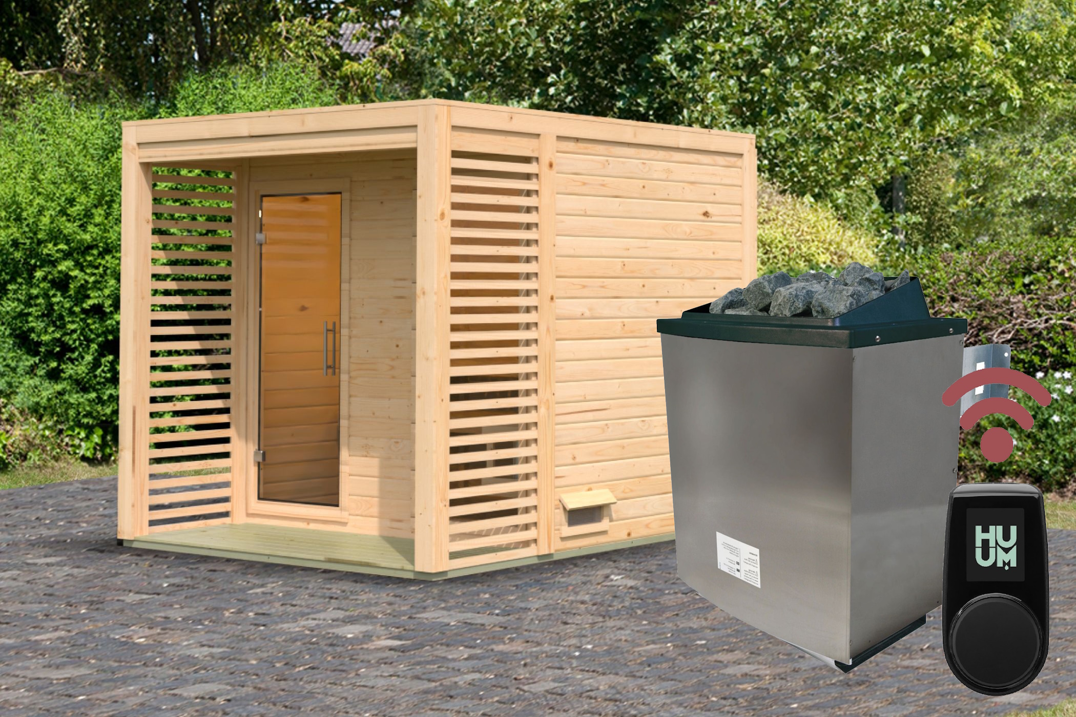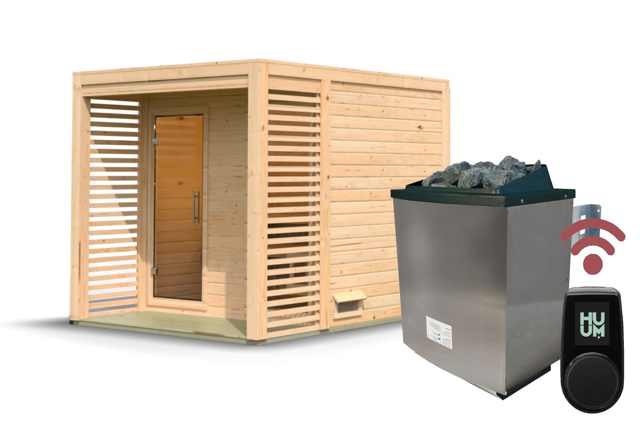 - In the set incl. heater (of your choice)/ HUUM WiFi control unit (app control possible) and sauna stones