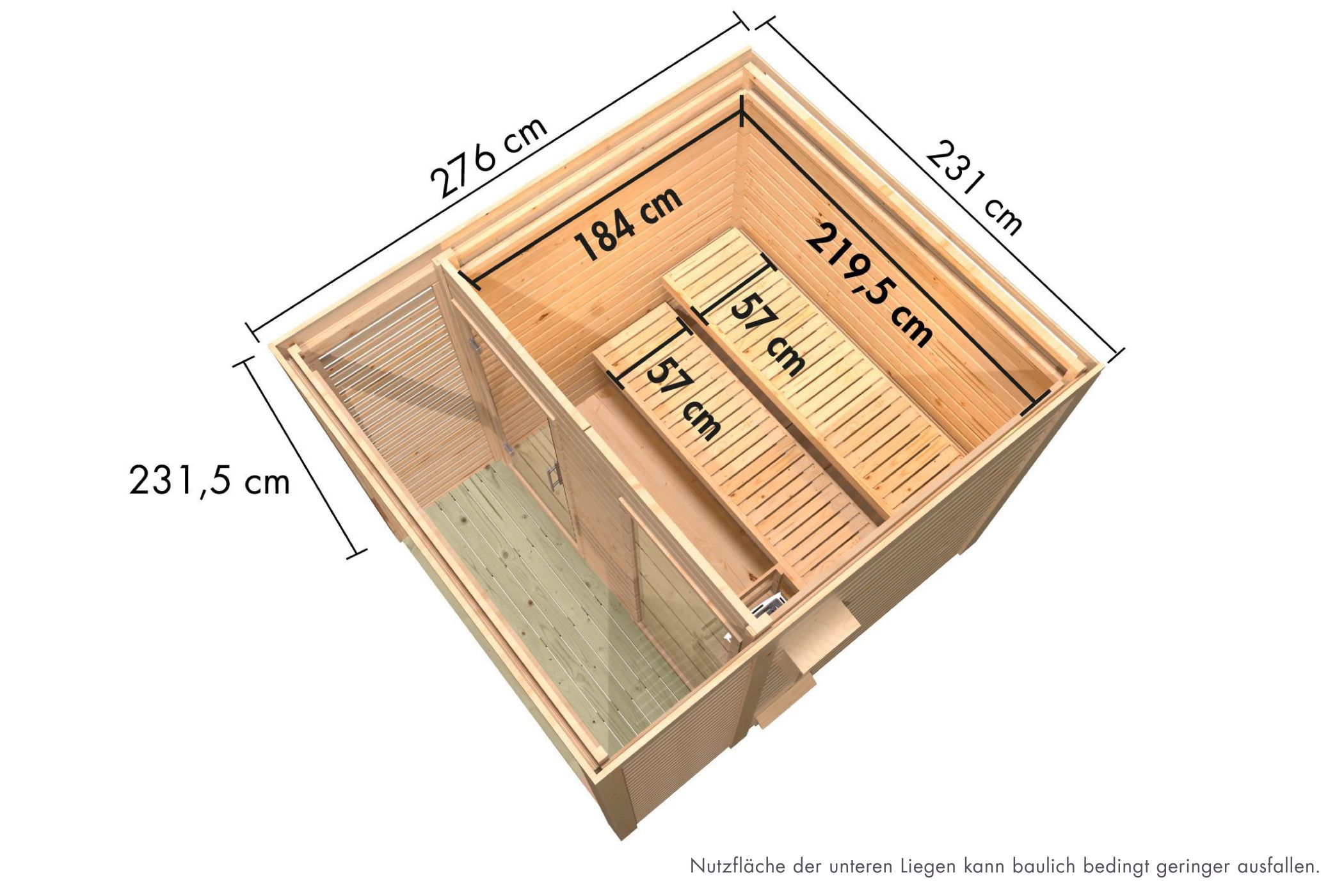 Karibu Gartensauna "Saunahaus Angkor 2" 5 Personen 9 kW Ofen (finnisch) + Steuergerät HUUM WIFI