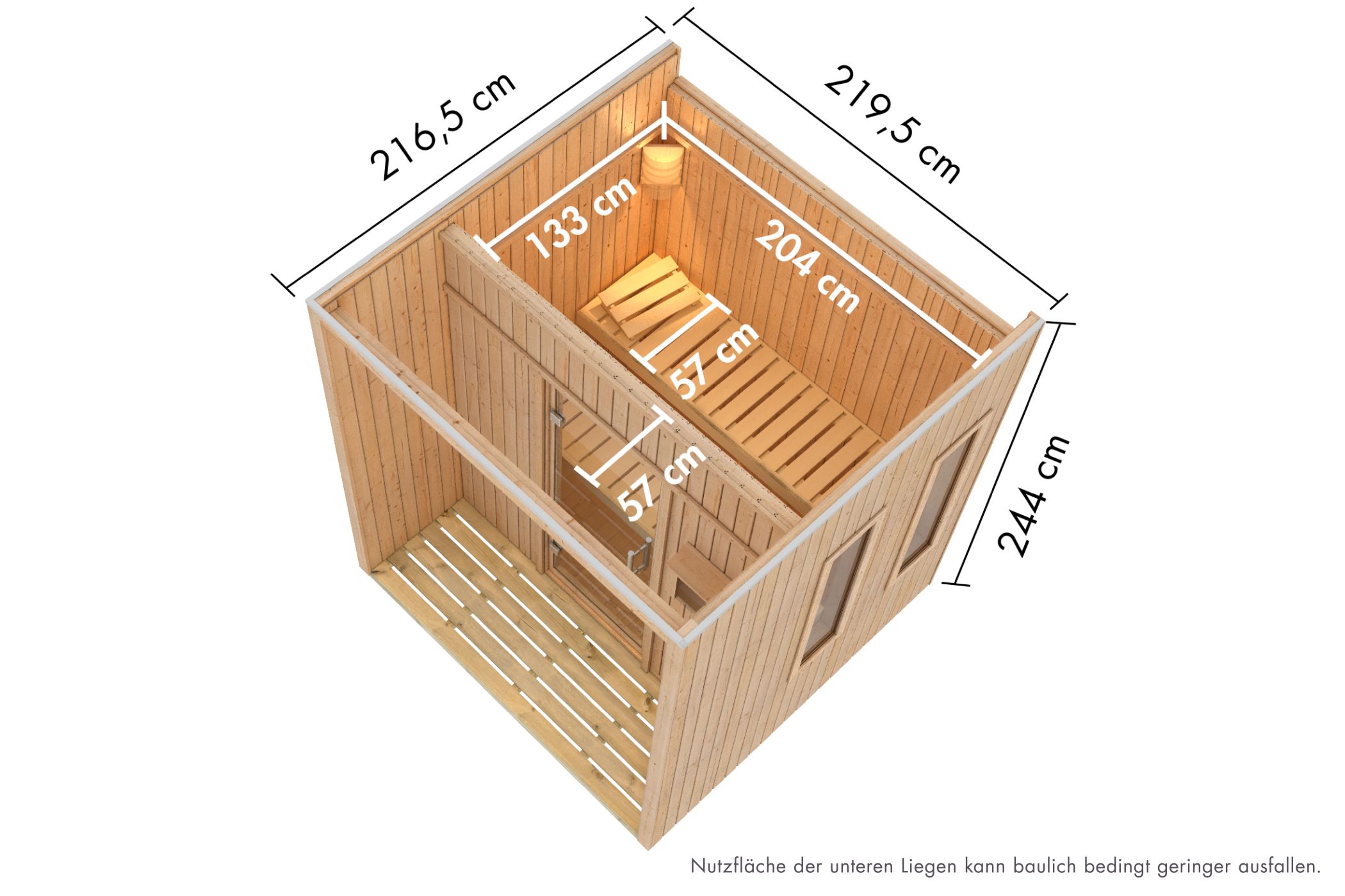 | Inner dimensions width sauna: | 204 cm |