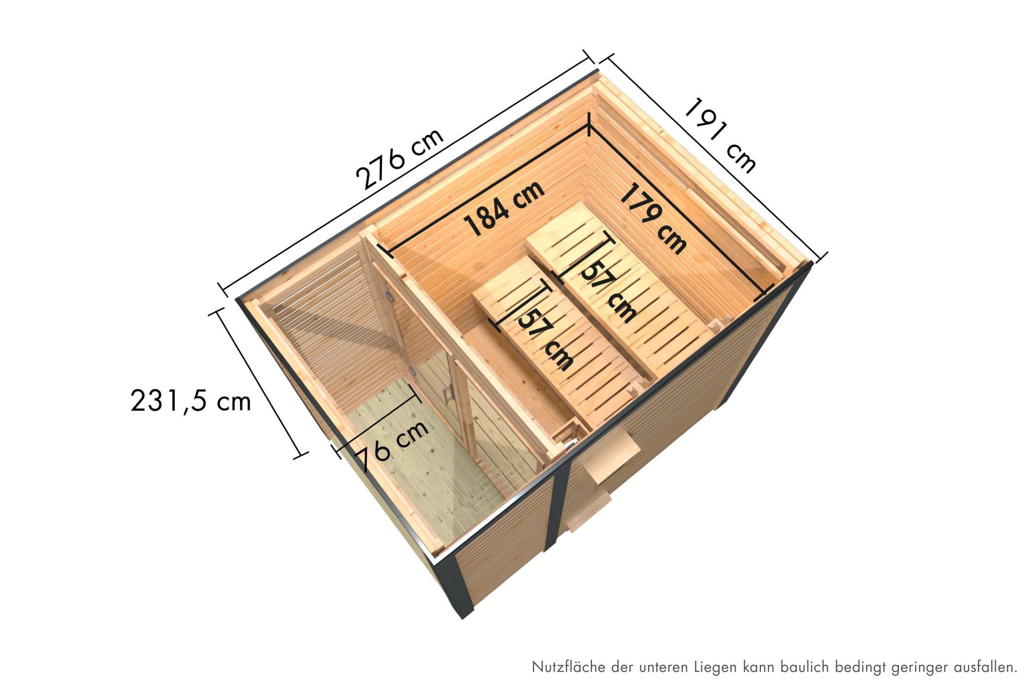 Karibu Gartensauna "Saunahaus Ares 1 mit 2,70 m Anbaudach" 4 Personen