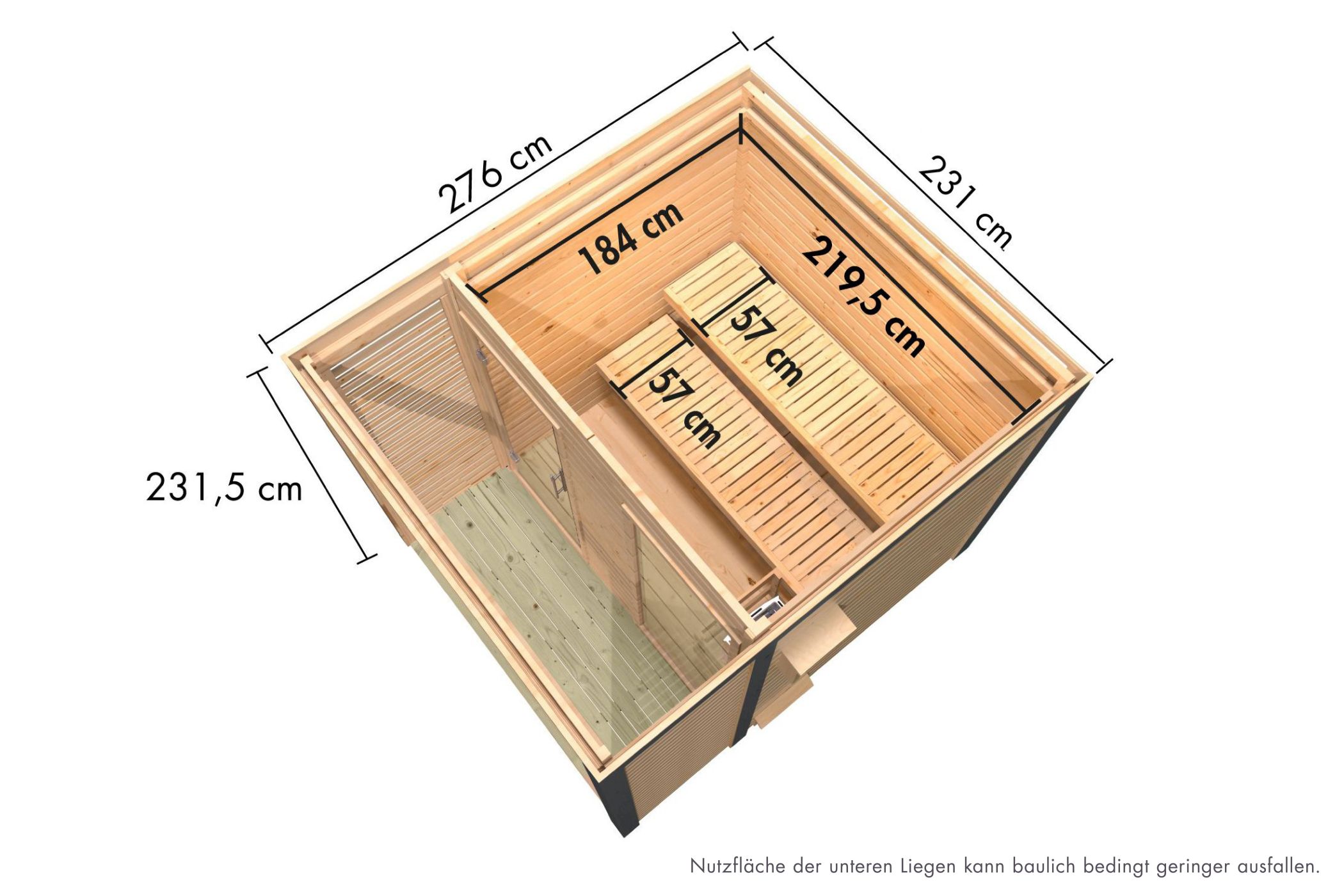 | Inner dimensions width sauna: | 219,5 cm |