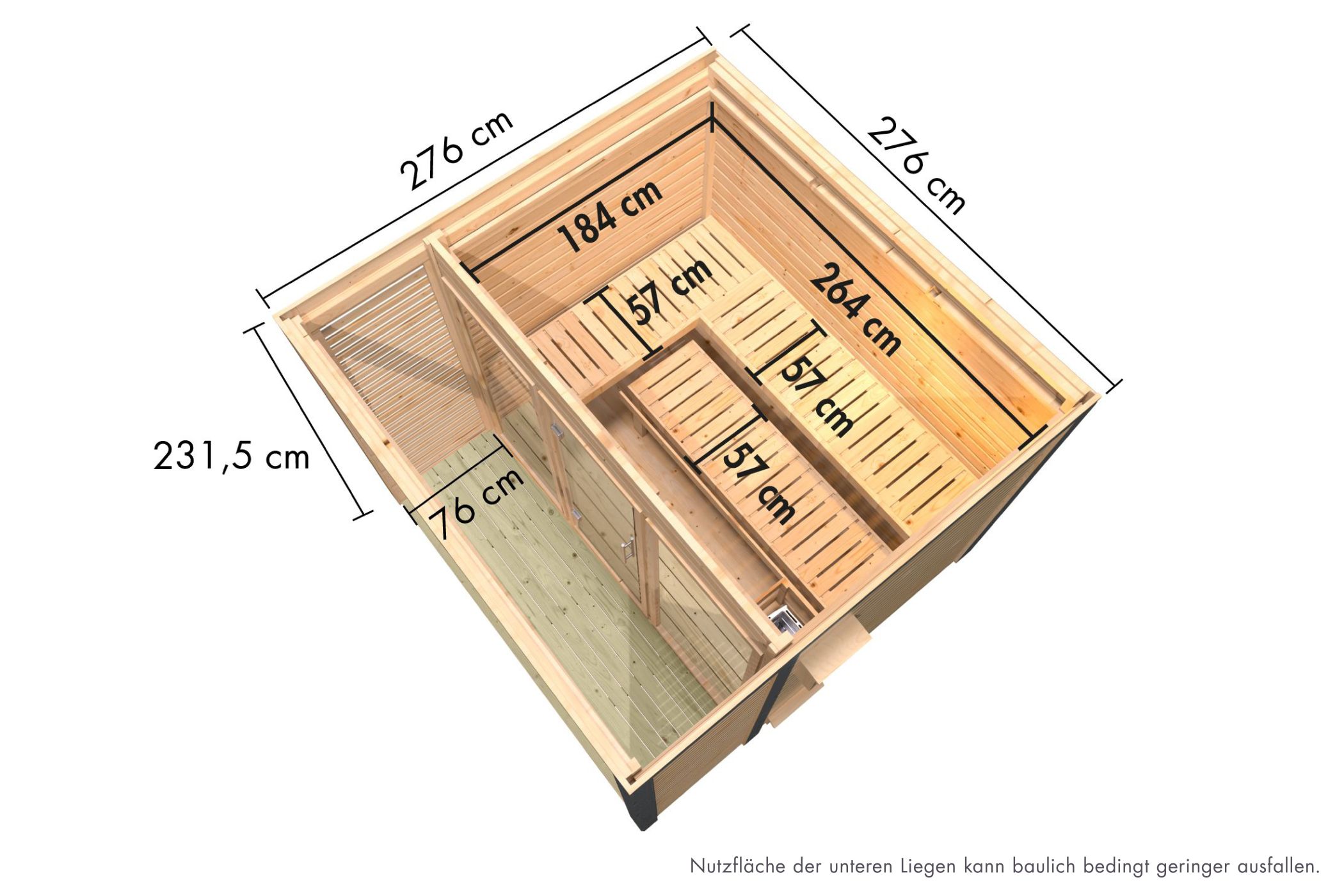 | Inner dimensions width sauna: | 264 cm |