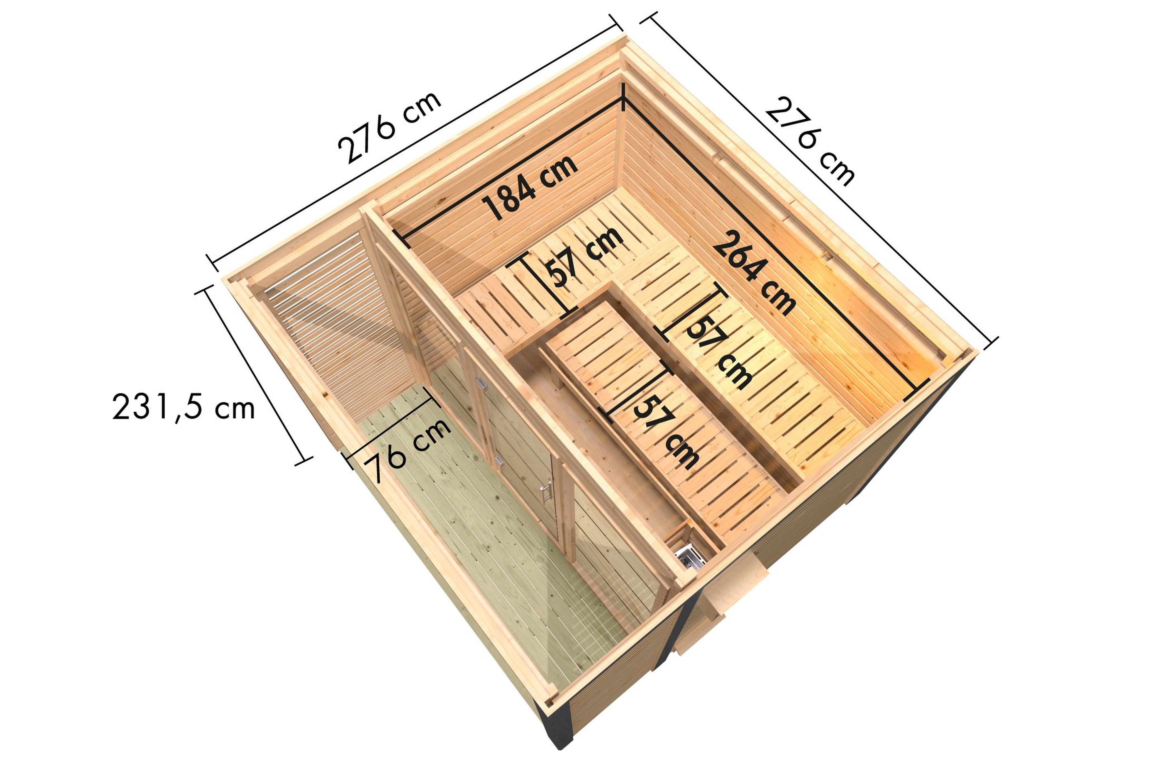| Inner dimensions width sauna: | 264 cm |