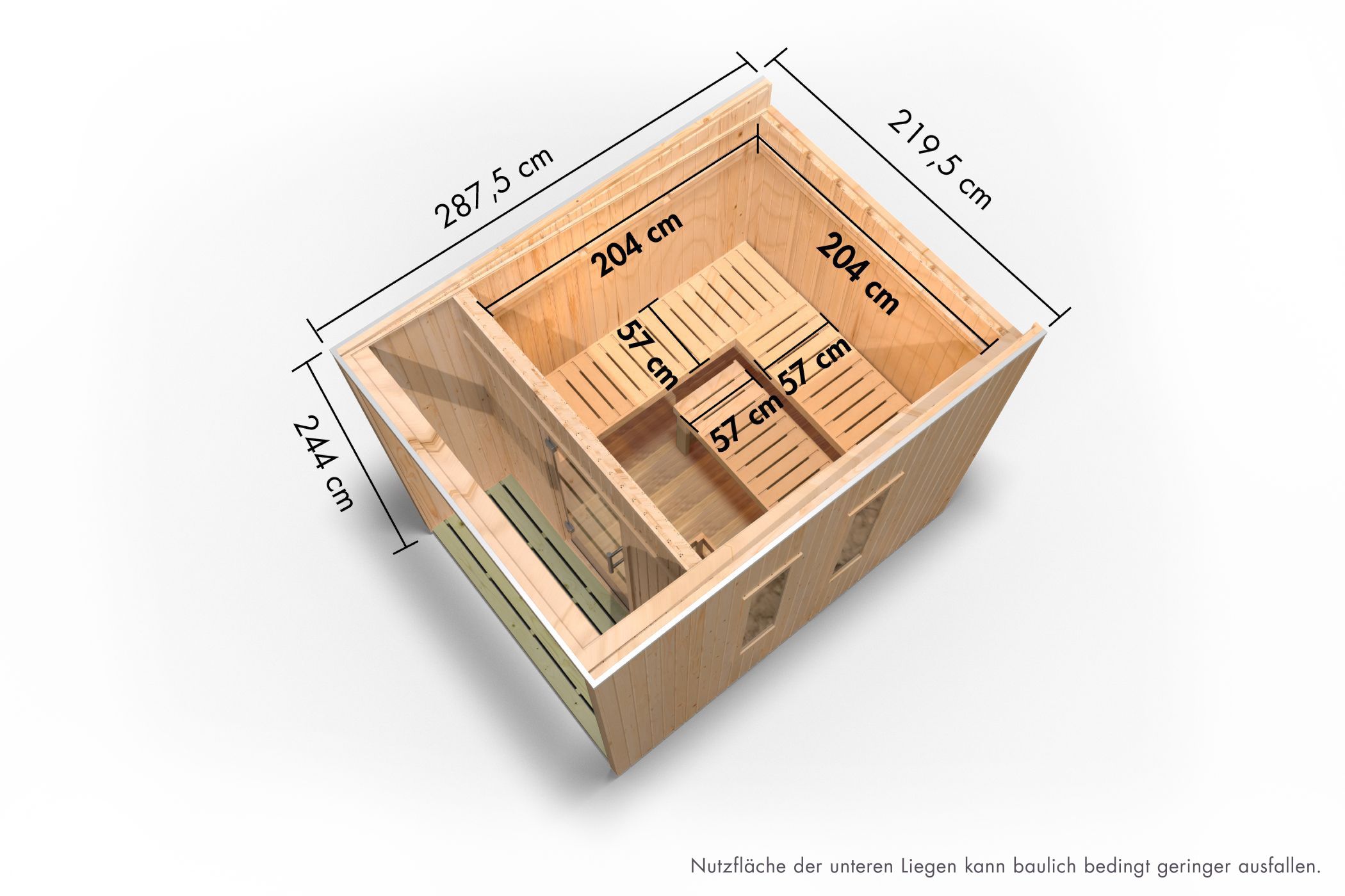 | Inner dimensions width sauna: | 204 cm |