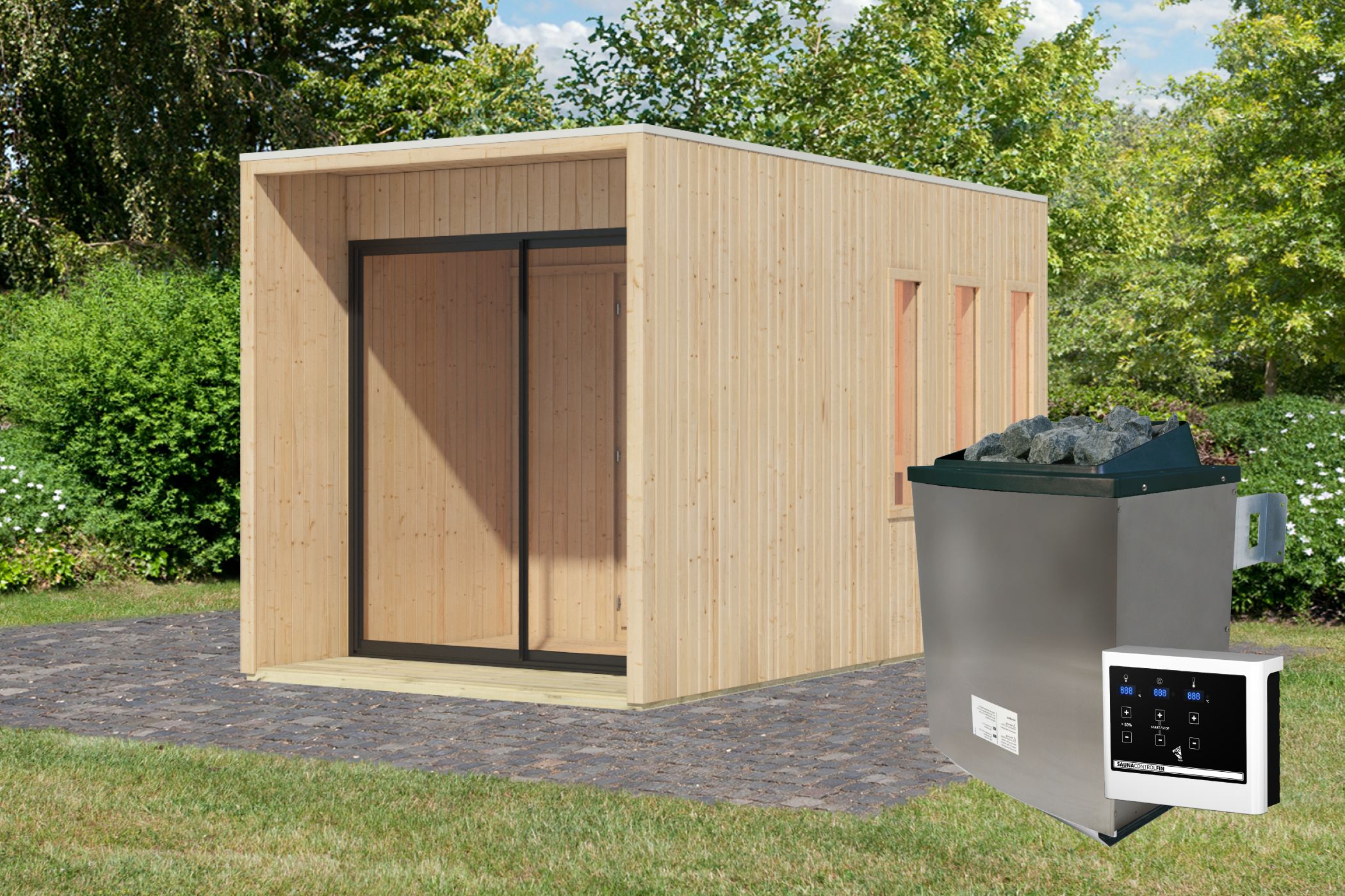 This depends, among other things, on the size of your garden sauna. You can find a detailed overview with additional information worth knowing in our selection guide for the right sauna heater.