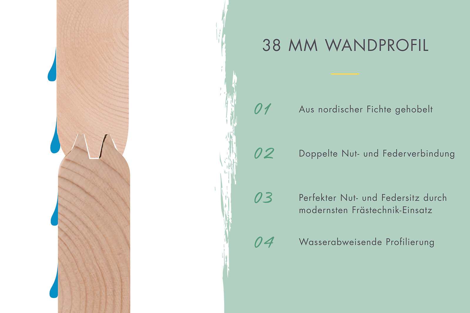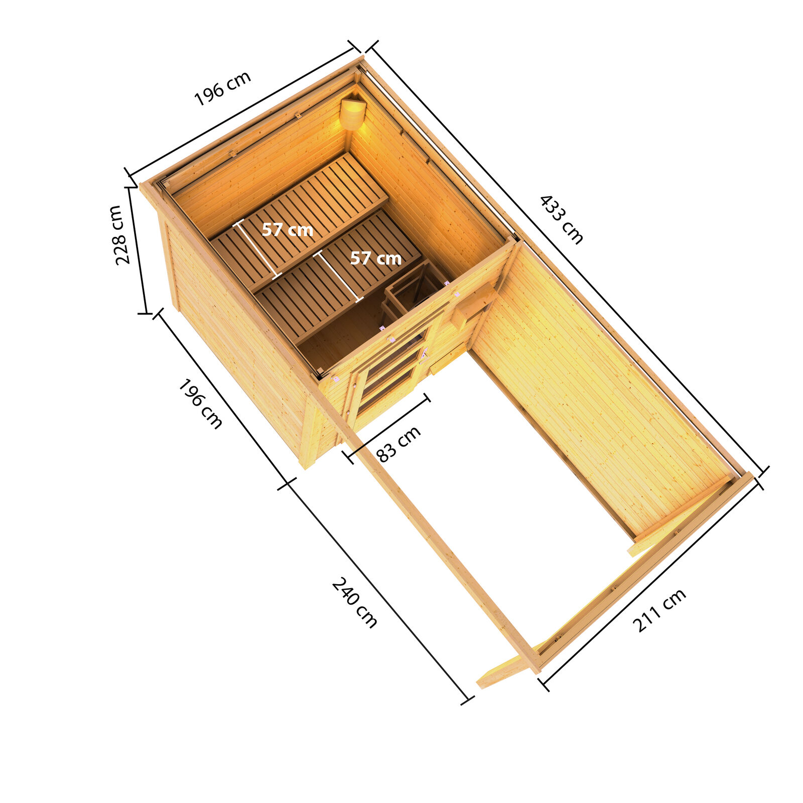 Hint: Dacheindeckung und Saunatechnik optional erhältlich (Nicht im Lieferumfang)
