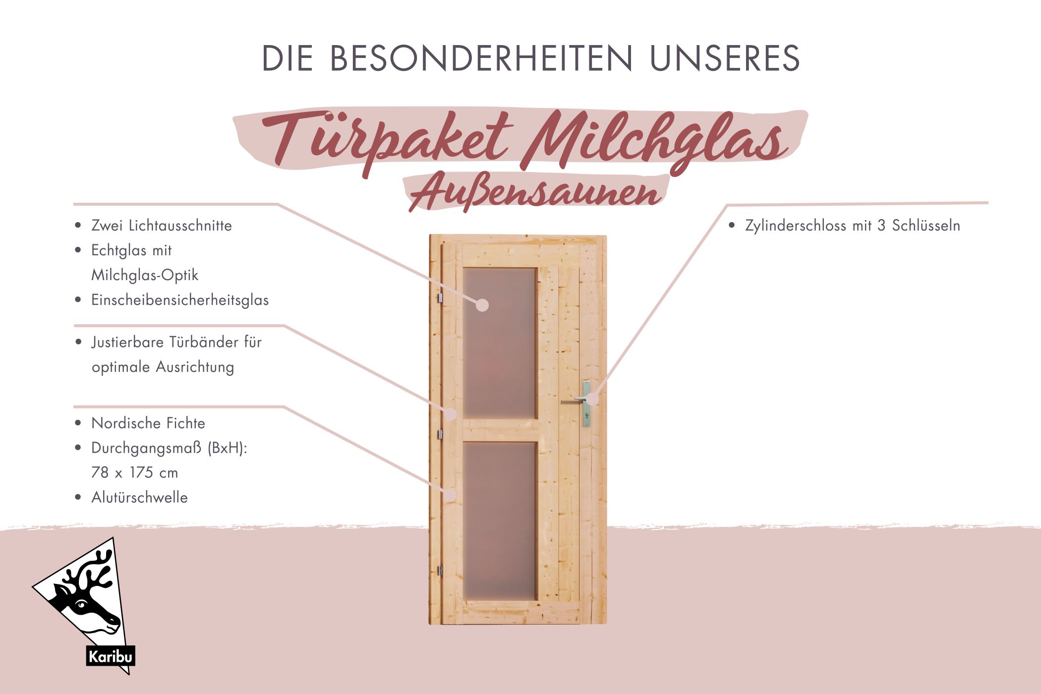 Door package outdoor sauna frosted glass look